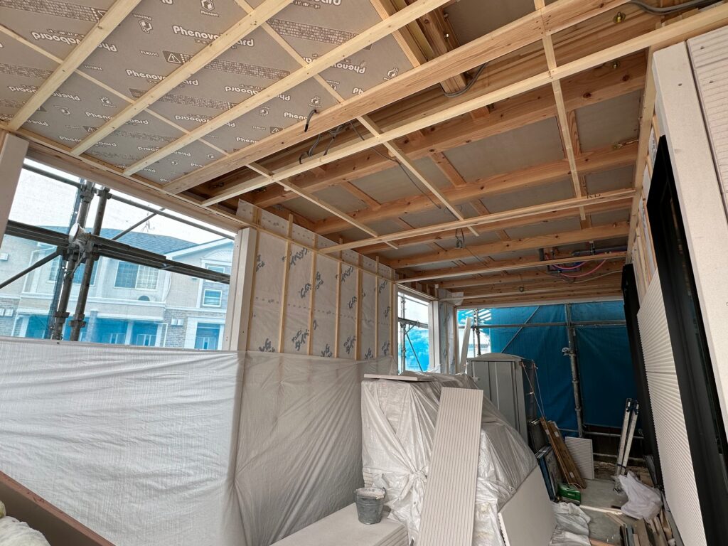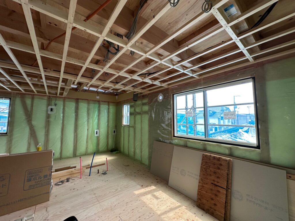 2階リビング 内装施工中