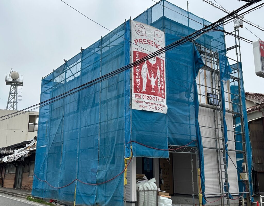 安佐南区長束3丁目の新築分譲住宅 建築現場です。